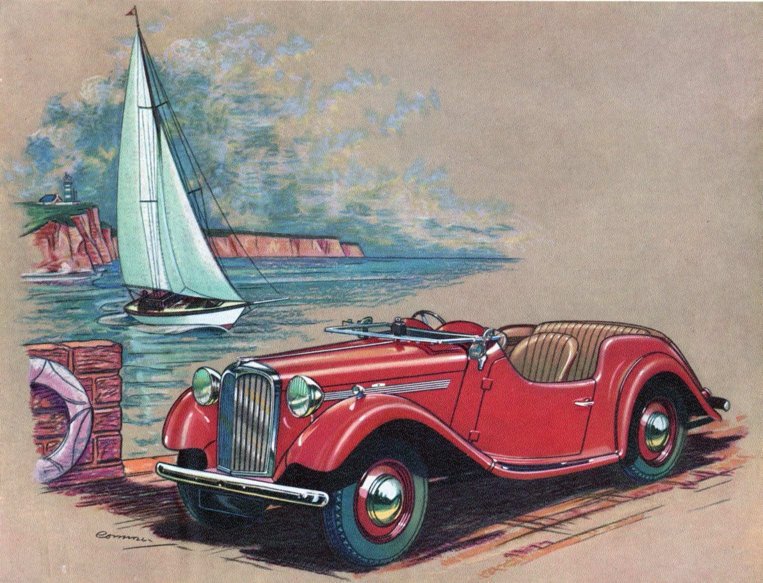 1946 - Resumed production of sedan models after the WWII. Prior to 1950, American distribution was handled by Fergus Motors in New York, which may have imported Singer Ten sedans along with the SM-9 Roadster.