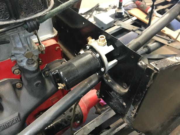 - He had also previously mounted the electric fuel pump to the firewall.
