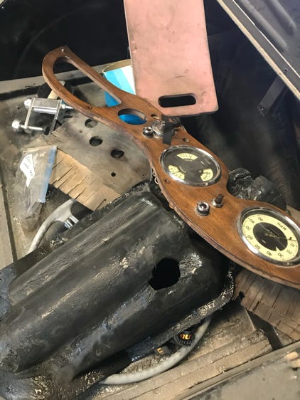- In the meantime, I took the finished dashboard over to Brad who will try and fit it in preparation to hook up the oil pressure gauge in preparation to move towards starting the engine for the first time. I think we are a long way from that watershed moment, but it is kinda exciting to think about it.
