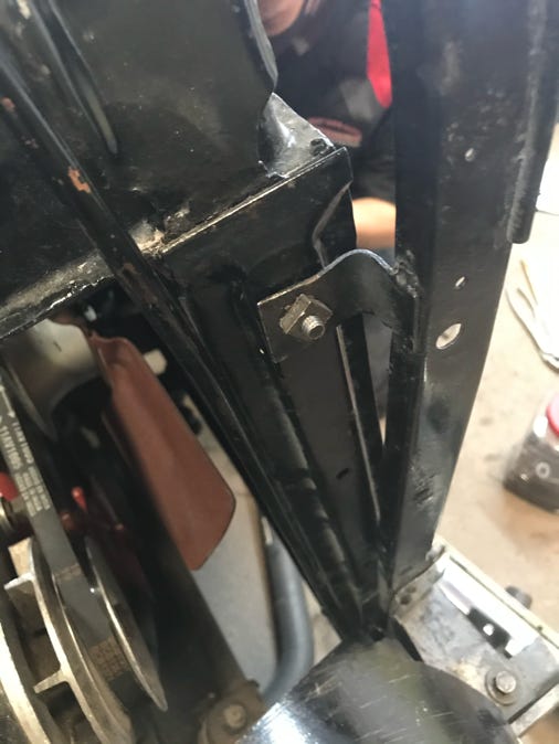 - I spent the afternoon attaching the mid-ship wings to the frame which support the front bubble fenders. The holes had become rusted and then full of paint and needed to be retapped. Luckily I found four suitable bolts which also had to be run through the die.