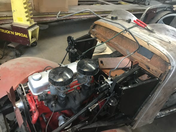 - When I left, Brad had flipped the accelerator linkage and was puzzling how to attach the floorboard to the firewall.