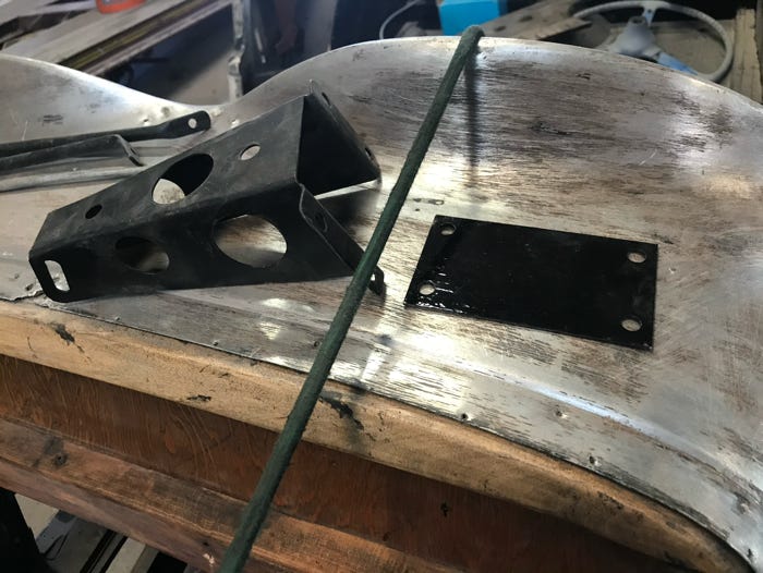 - I cut a relief kerf in wooden section above firewall - not pretty, but eventually enough depth to allow the backing plate to lie flat and allow the pilot holes to be drilled accurately.