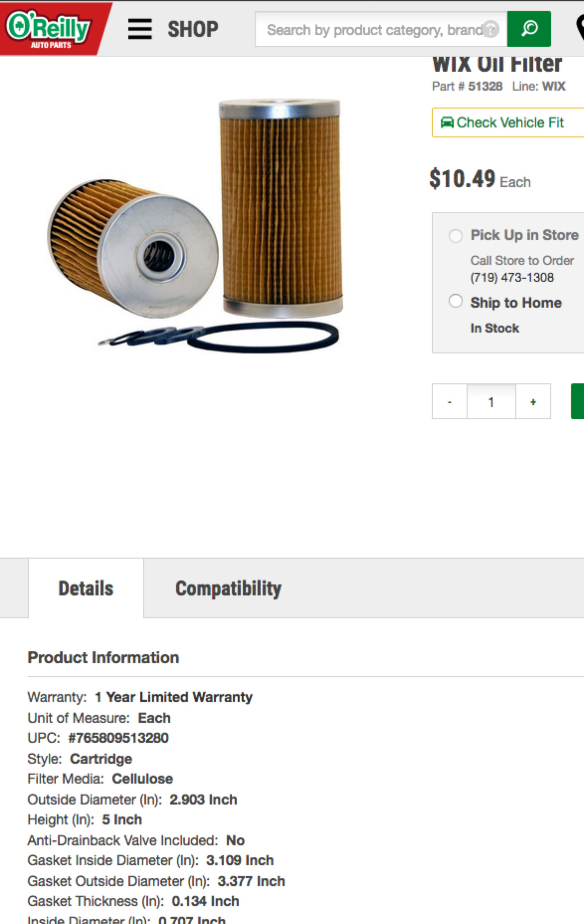 and Car Quest filter #85328 for the past seven years. They are readily available and come with the square cut O-ring as well."