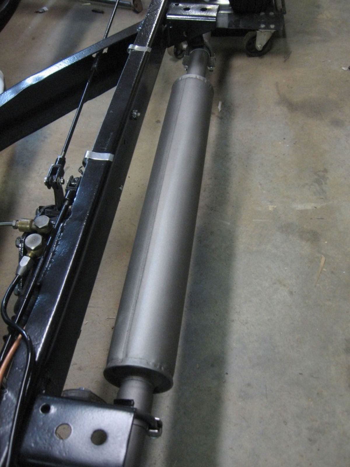 This is a great view to show the location and set-up of the muffler assembly. Fred mounted the system differently to the original, but the installation is sweet!